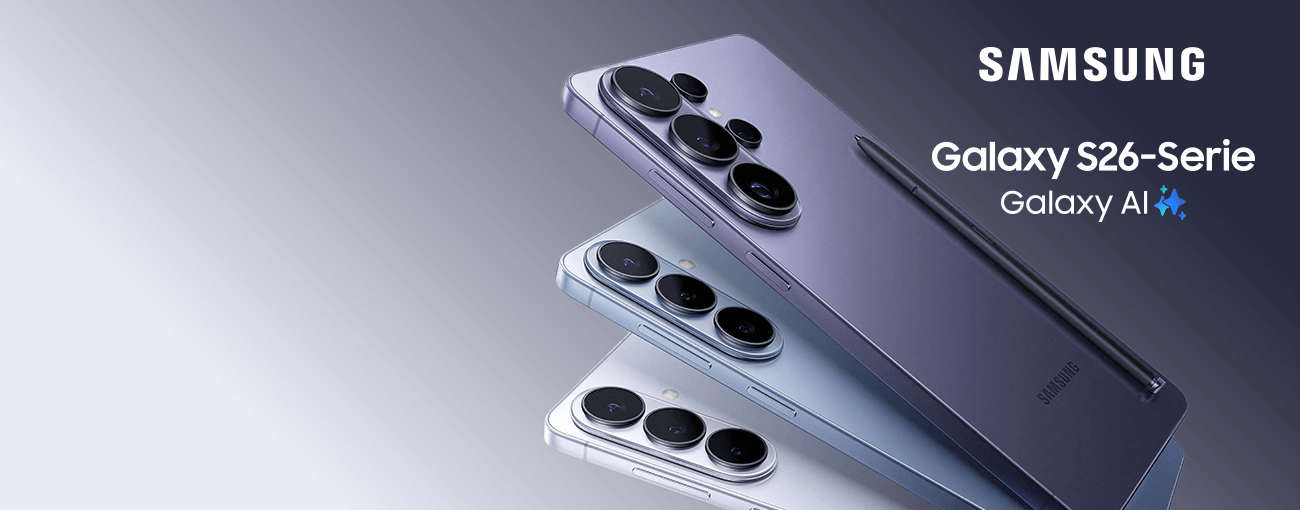 Die neue SamsungGalaxy S26-SerieSichere dir jetzt beim Kauf der neuen Galaxy S26-Serie einen Ankaufsbonus von bis zu 250 €* für dein Altgerät.Zur Galaxy S26 Seriebis zu250 €*Ankaufsbonussichern